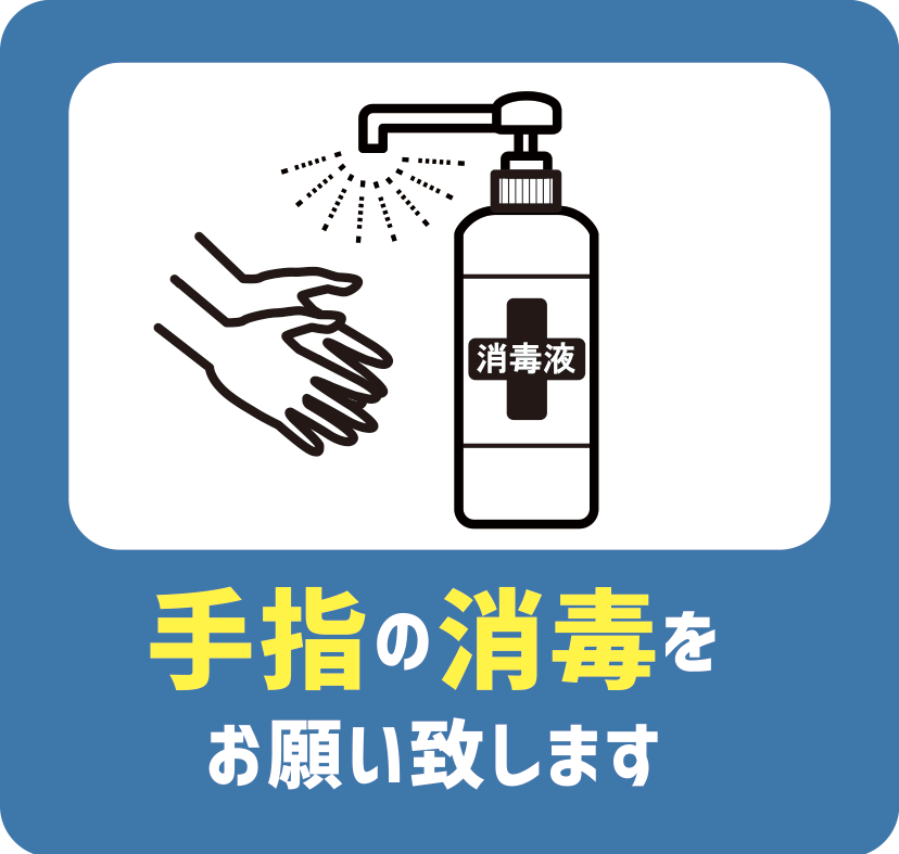 ![]() | 手指の消毒 ※アルコールを用意しております |