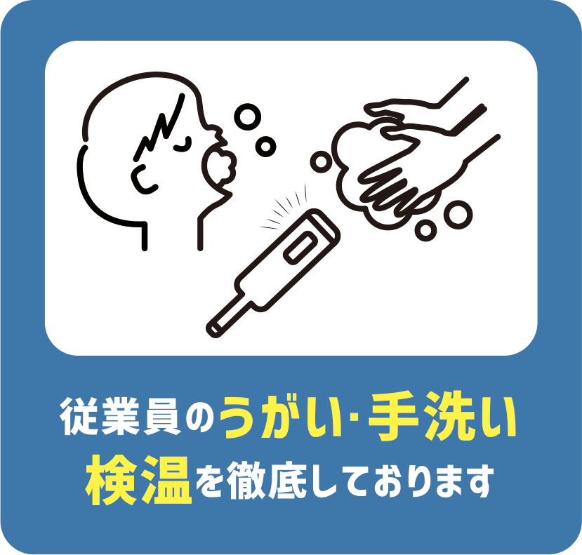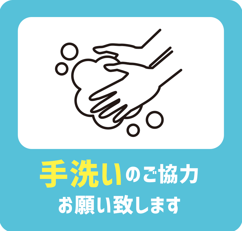 ![]() | うがい・手洗い ※消毒効果のある石けん(ハンドソープ)を用意しております |
